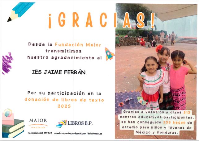 La Fundación Maior agradece nuestra participación en la donación de libros de texto 2025